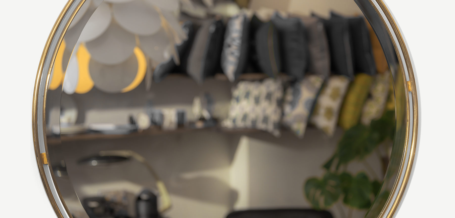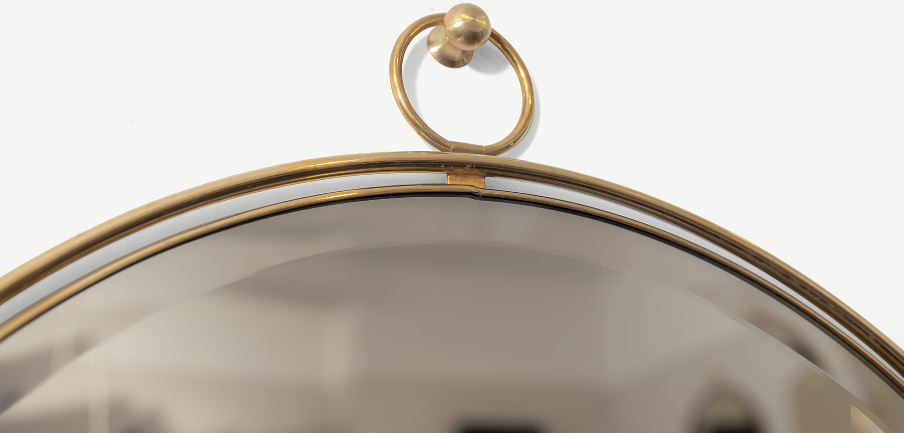 73 cm çapında olup pirinç kenar detay ve özel pirinç halka tasarımlı kalın ayna