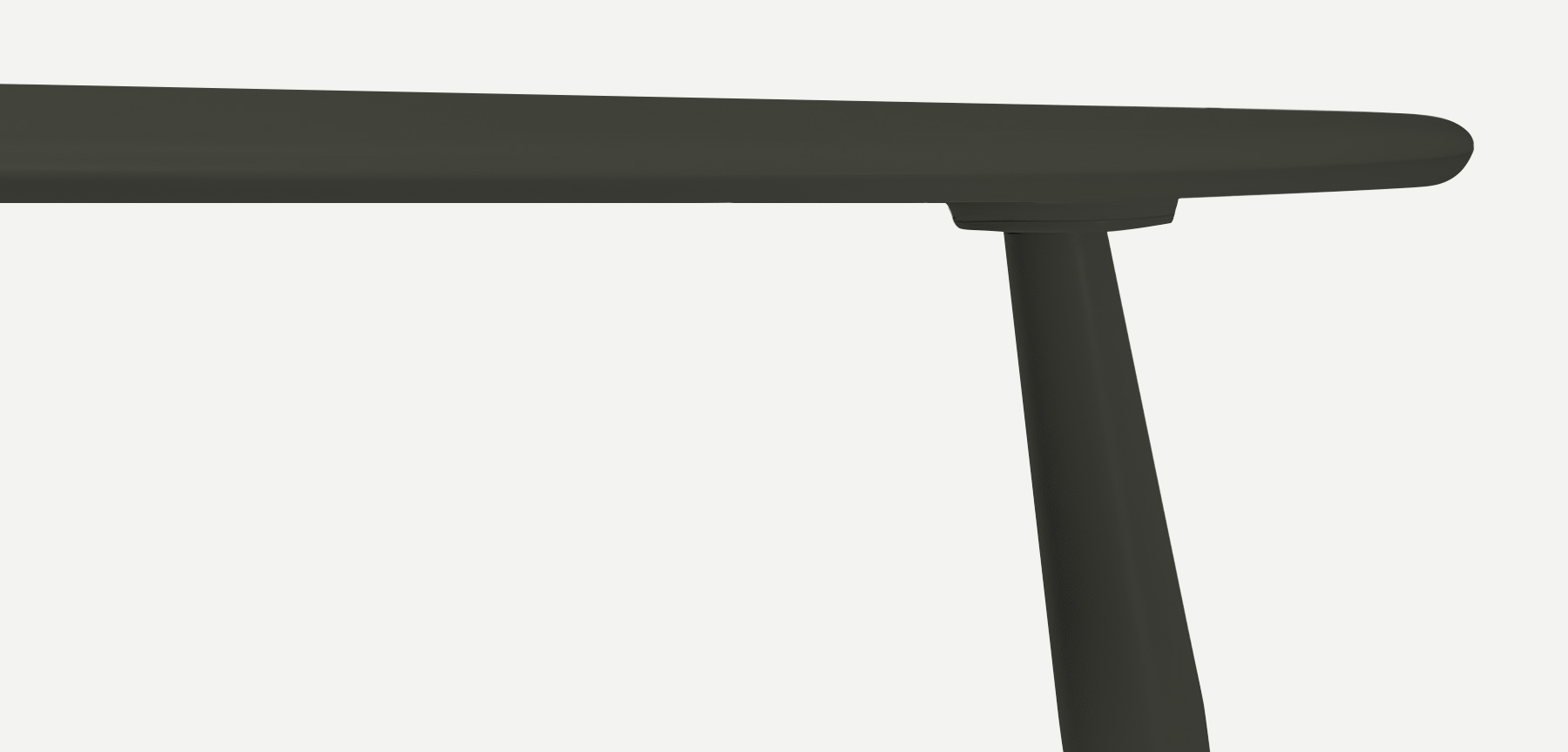 Doğal formuyla uyumlu halde, kenarları da dışbükey doğal zımpara ile şekillendirilmiştir. Ayakların konik hatları, tablaya oturma kaidesiyle bütünlük sağlamaktadır.