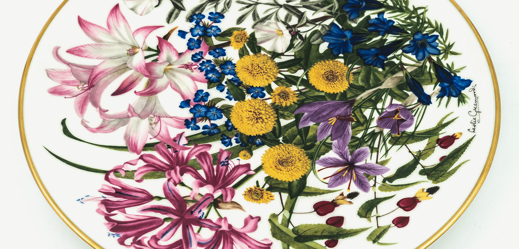 Her tabak ayına özel olup, o ay açan çiçek türlerinin illüstratif kolajlarından oluşmaktadır. Bu çiçek şöleni sunan çok özel koleksiyon sınırlı sayıda olup her bir tabak iyi kondisyondadır.