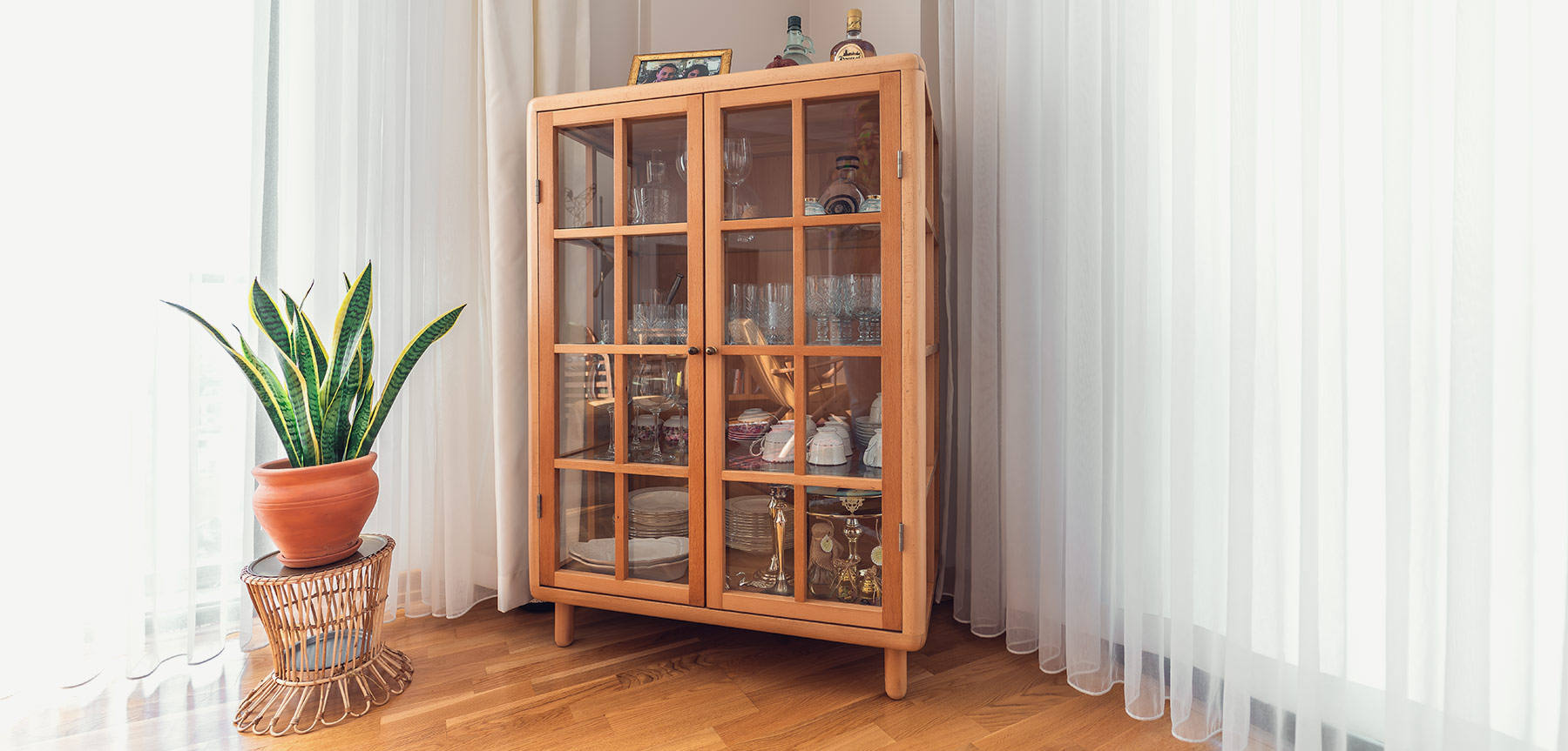 MidCentury Tarzı 120x85 cm Masif Camlı Büfe/Vitrin