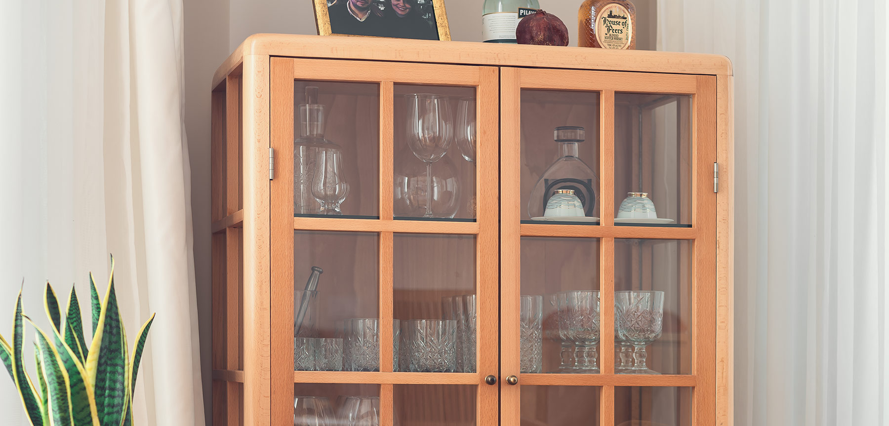 Fifties Koleksiyonunun MidCentury akımının karakteristik özelliklerini taşıyan Fifties Büfe, komple masif iskelete sahip olup 3 cepheden camlı şeffaf tasarımlıdır. Raf sisteminde kalın cam kullanılmıştır.