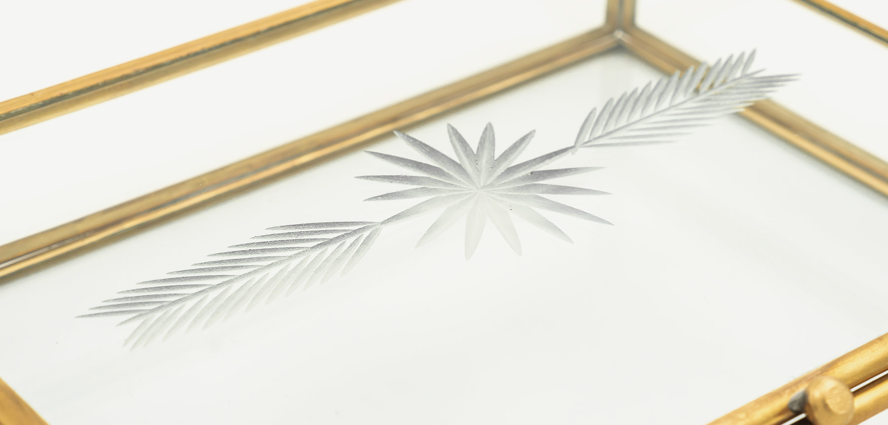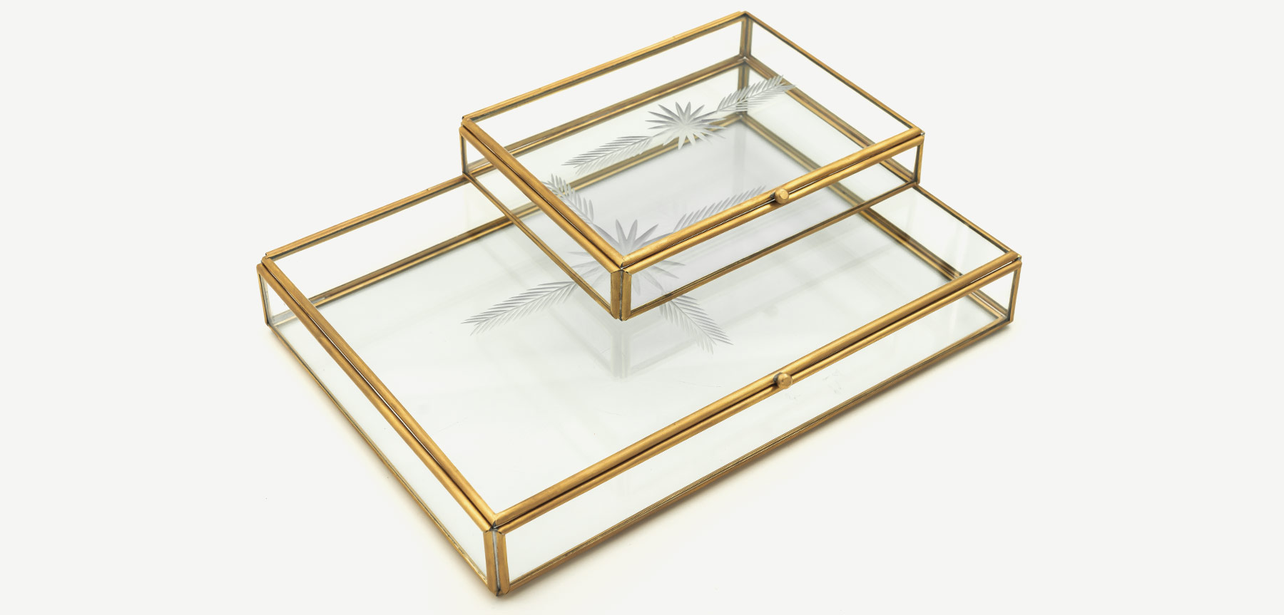 Bizote Camlı Art Deco Tarzı Pirinç Dekoratif Mücevher Kutusu