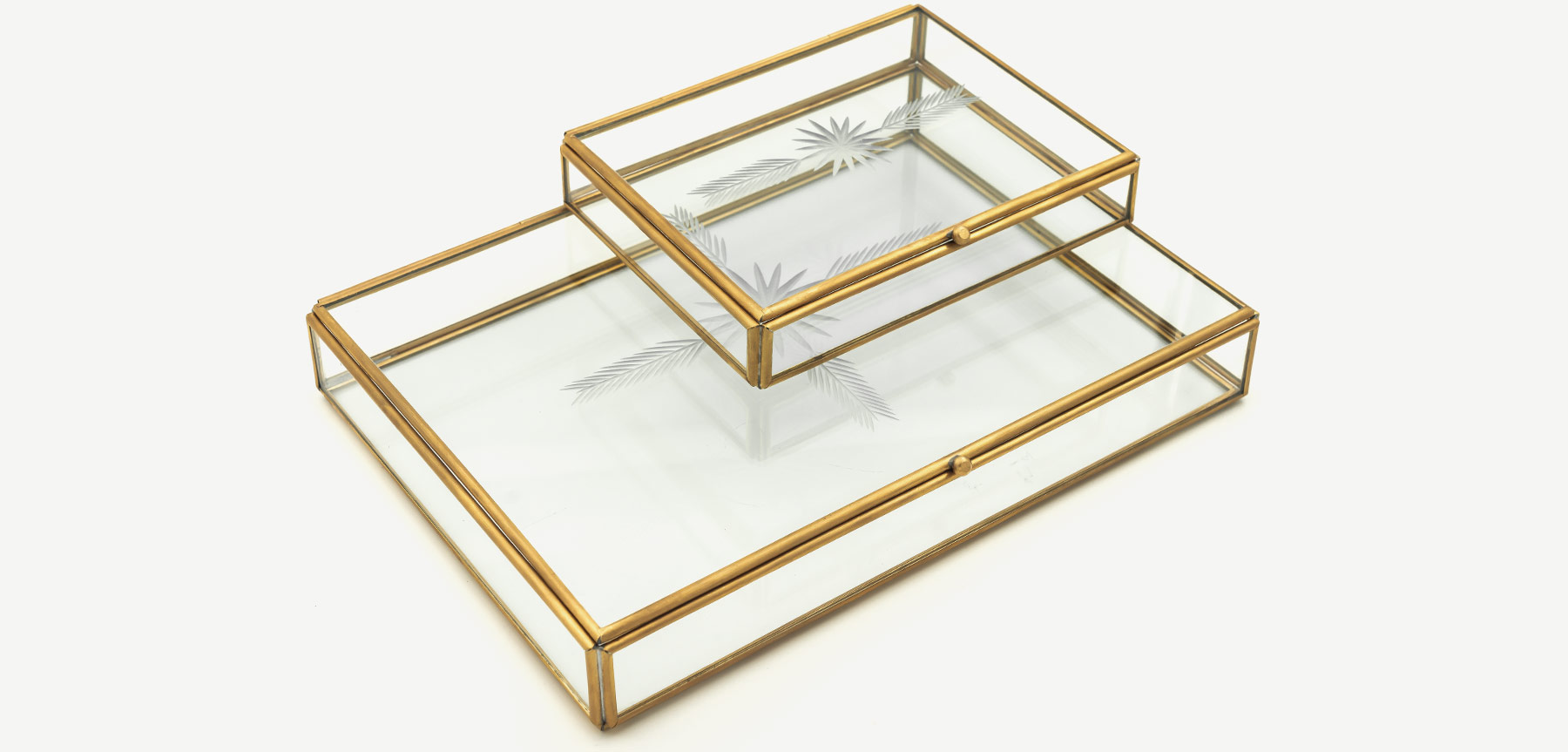 Bizote Camlı Art Deco Tarzı Pirinç Dekoratif Mücevher Kutusu