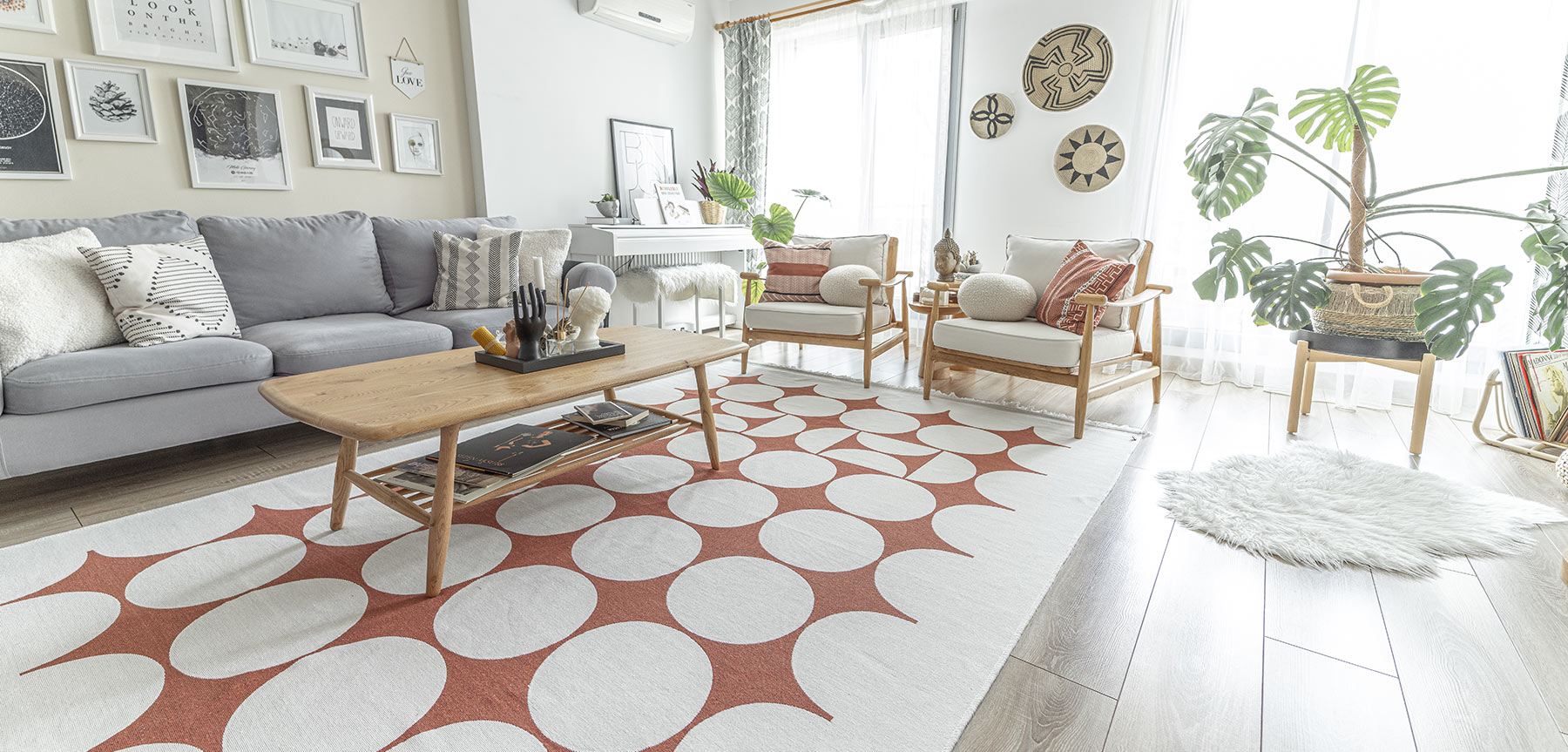 Naif ve bir o kadar şık duran desen ve renklerle, yorum katılmış bir düzende yerlerde farklı bir hava.Uğur Şayan