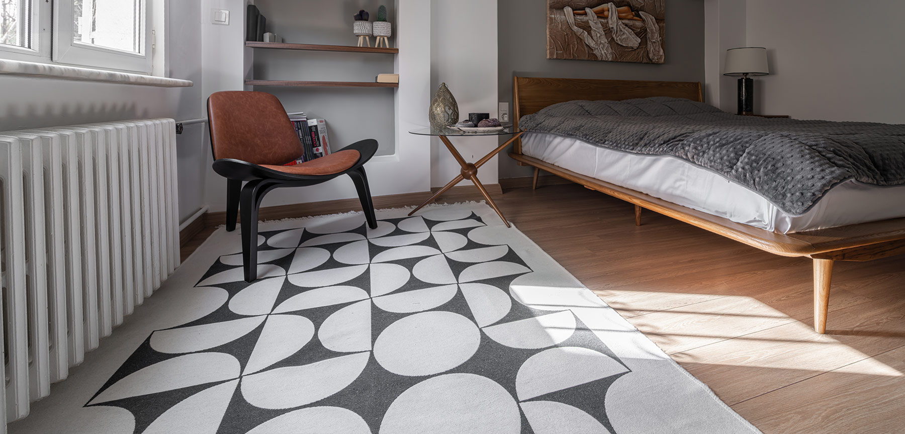 Naif ve bir o kadar şık duran desen ve renklerle, yorum katılmış bir düzende yerlerde farklı bir hava.Uğur Şayan