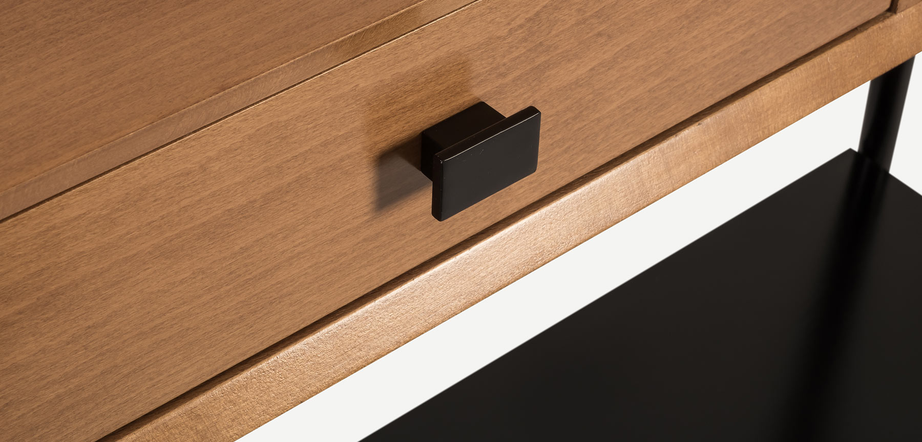 MidLine ailesinde masif kaplama ile uyumlu siyah ayak ve rafları bulunan ürünlerden; dresuarımız, evin girişinde başrol olmaya aday. Hem tasarımı hem de kullanışlılığıyla göz dolduruyor.