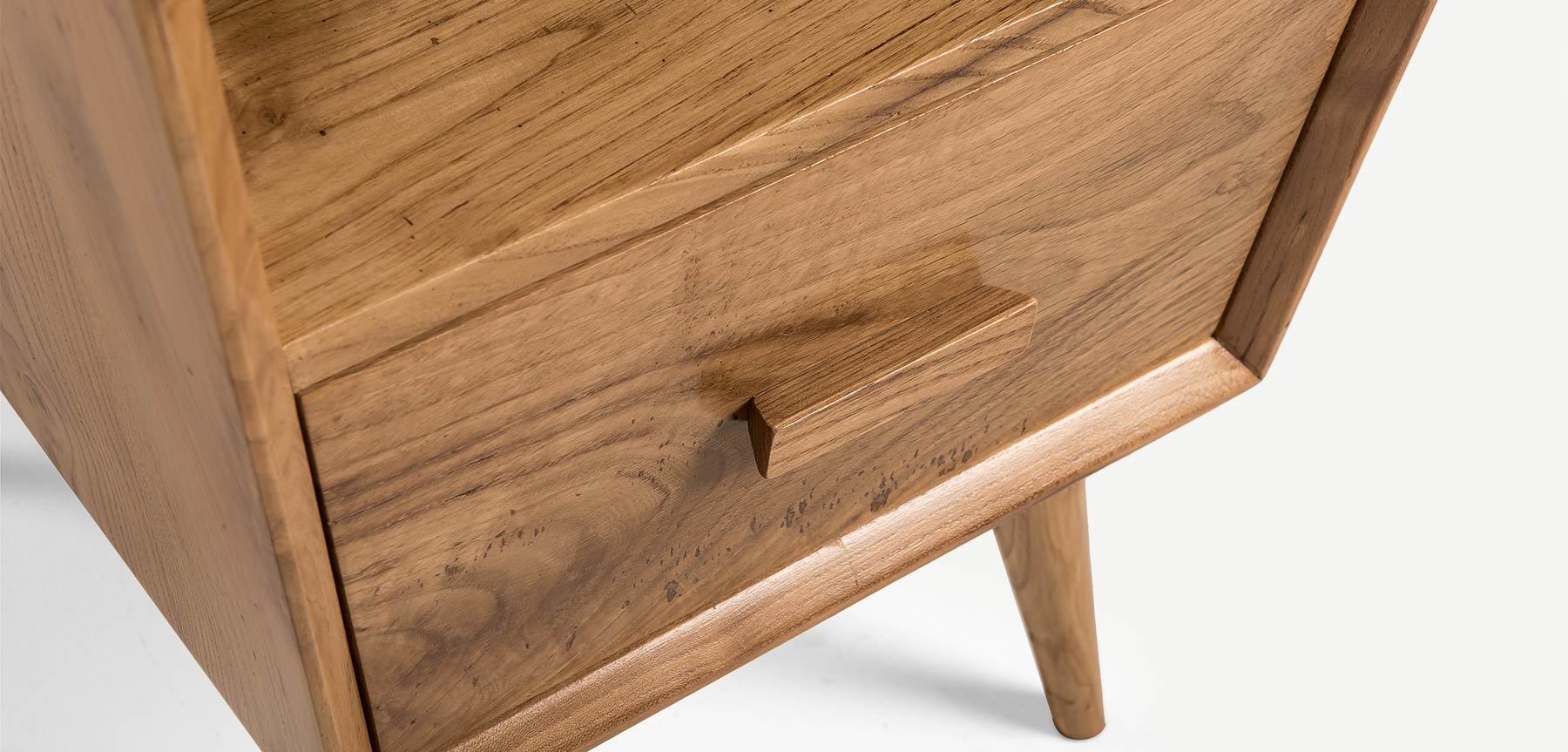 Malzemenin doğallığını korumak adına kulplar ve tüm aksamlar aynı masif malzemeden bütününe zarar verilmeyecek şekilde tasarlanmıştır. Retro tarzının en özel ve en kullanışlı örneklerinden.