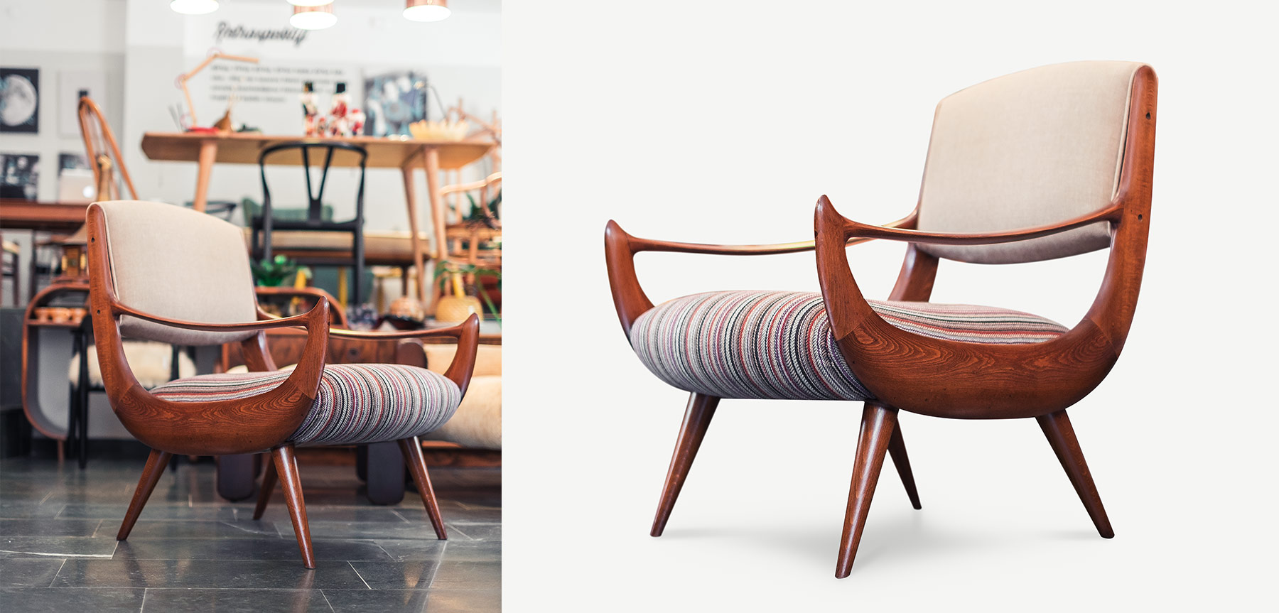 MidCentury tarzının karakteristik özellikleri bu retro berjerde sizlerle. Retro berjer olarak farklı tarzlarla da kombinleyebileceğiniz gibi farklı ahşap malzeme ile de üretilebilmektedir.