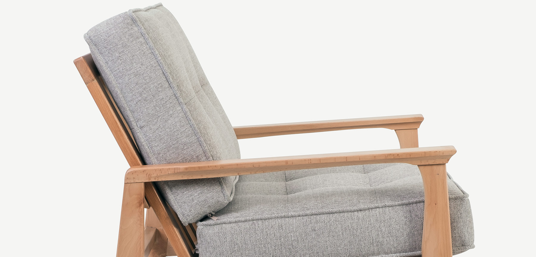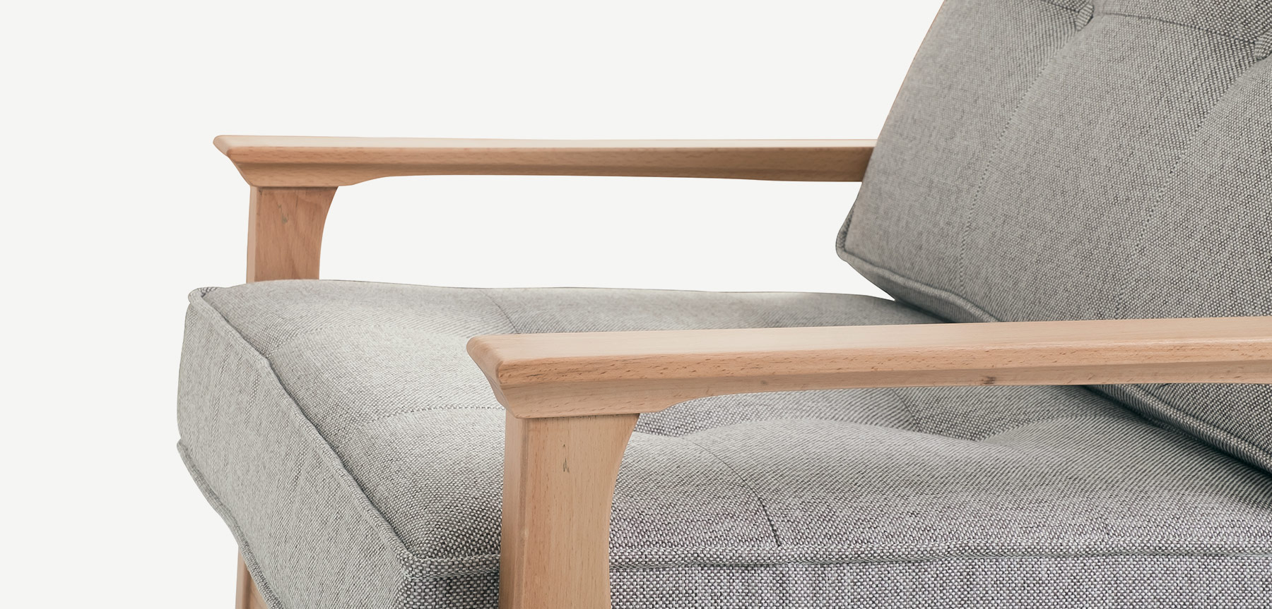 TinyLiny Açık Gri Midcentury Tarzı Ahşap Kolçaklı Danish Berjer