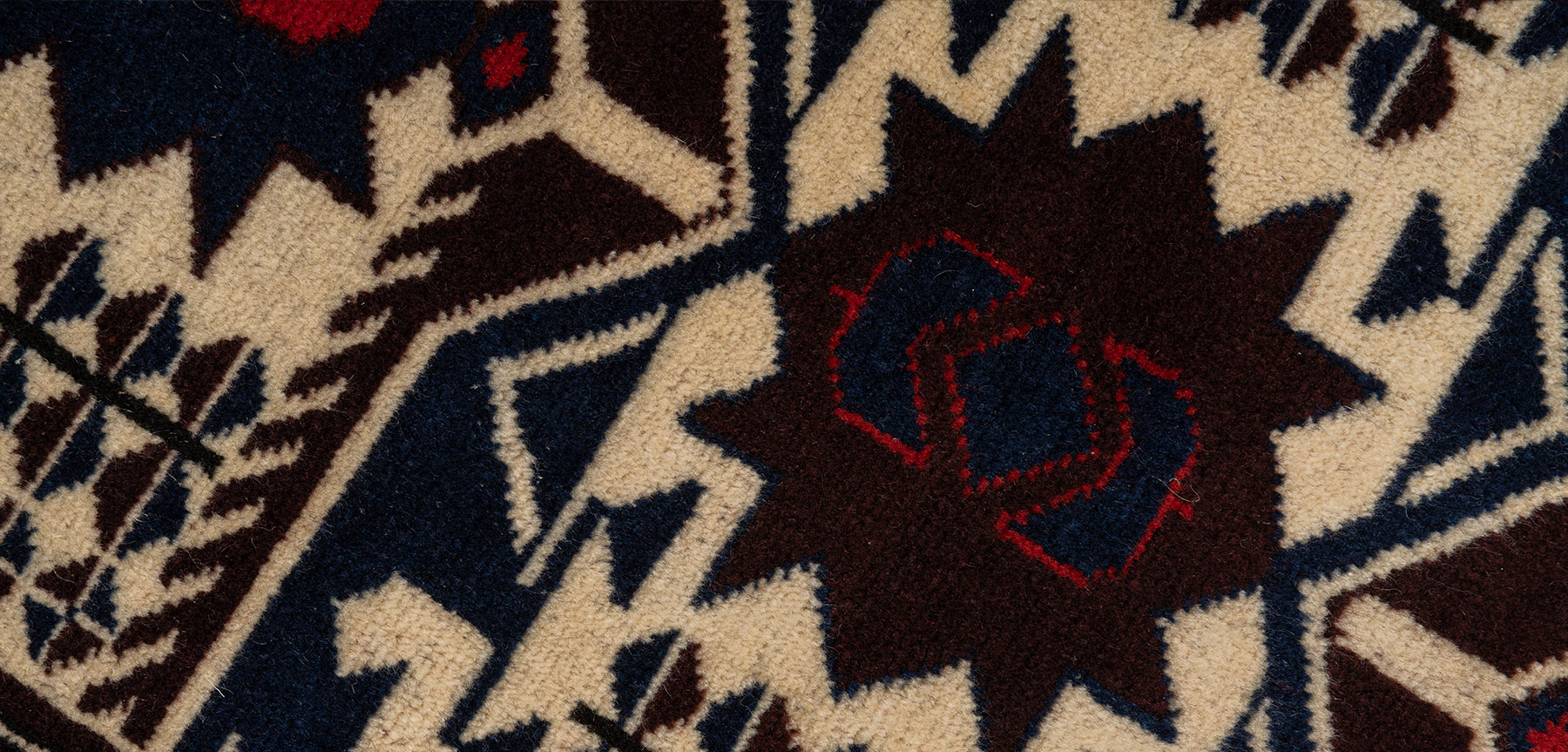 Kenar bölgesindeki beyaz şeritteki nazar boncuğu Yağcıbedir Halısının, İslamiyet öncesine dayandığının kanıtıdır. İslamiyet'te Nazar duası vardır, nazar boncuğu yoktur.