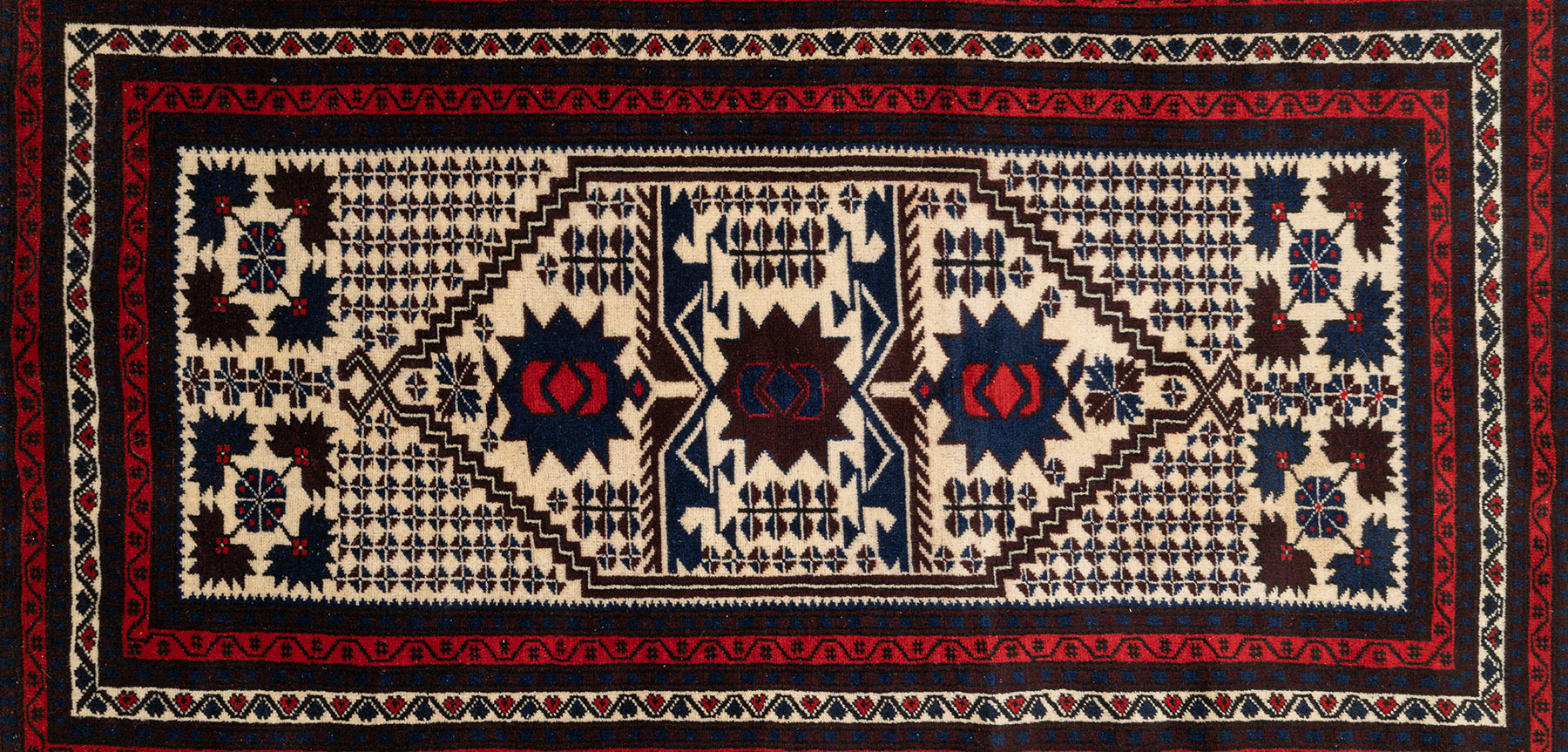 Çok desenli, kırmızı ve lacivert tonlarında bir yapıya sahiptir.