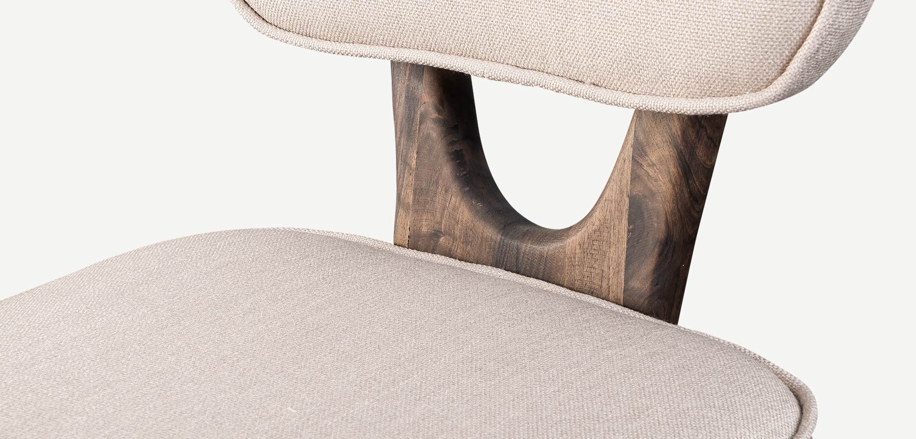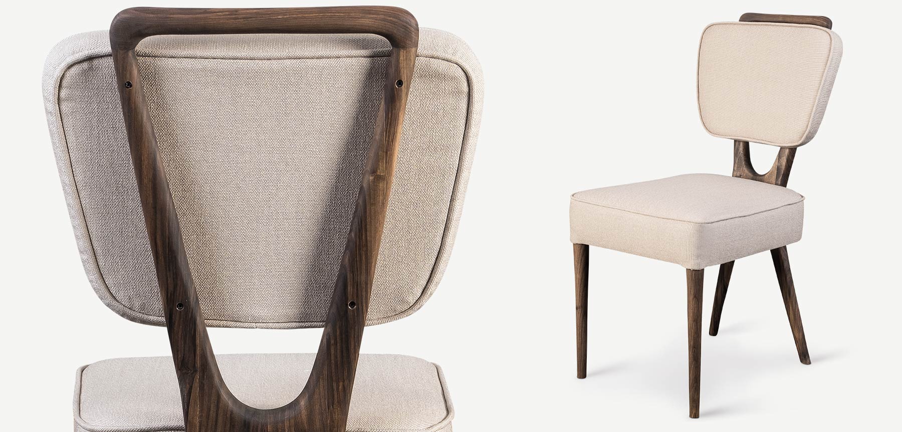 Sıradışı sırt tasarımıyla İtalyan tarzı keten döşemeli ahşap sandalye.